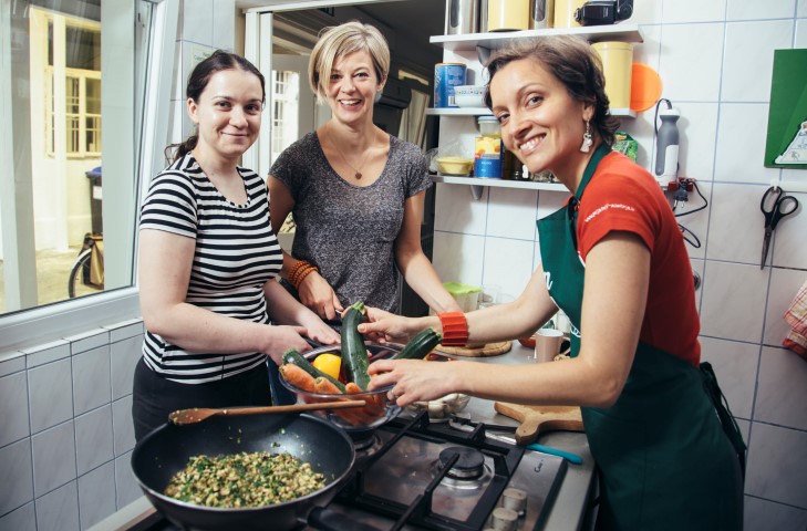 Posljednja radionica kuhanja održana prije ljetne stanke bila je u kineskom tonu. Nikolina Plenar, uz pomoć polaznika, pripremila je za predjelo dim sum (kineske parene punjene okruglice), glavno jelo činio je wok s tofuom i povrćem uz kus-kus kao prilog, a na kraju su svi uživali u desertu, domaćem sladoledu s kikirikijem.