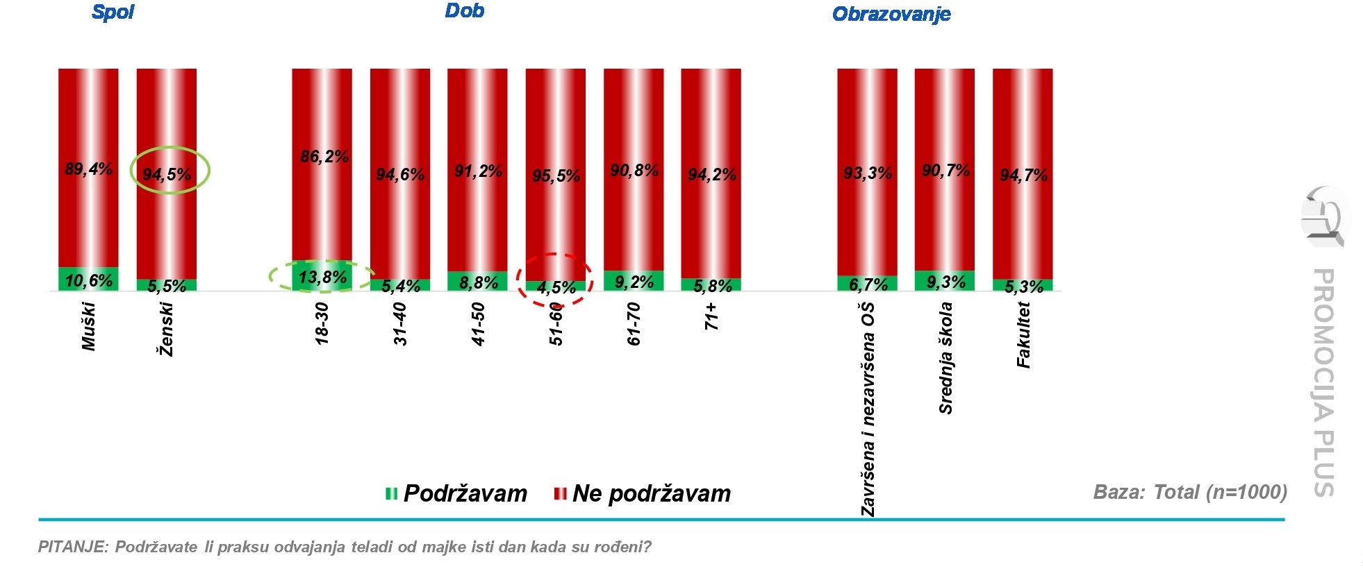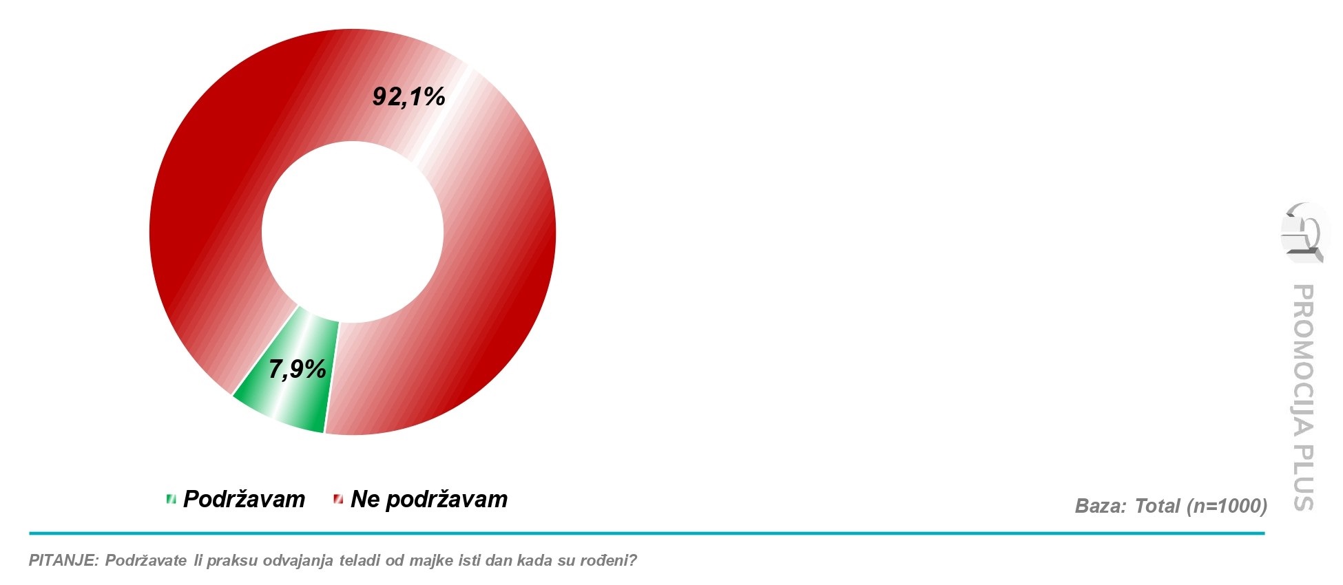 92% ispitanika ne podržava praksu odvajanja teleta od majki isti dan kad su rođeni.