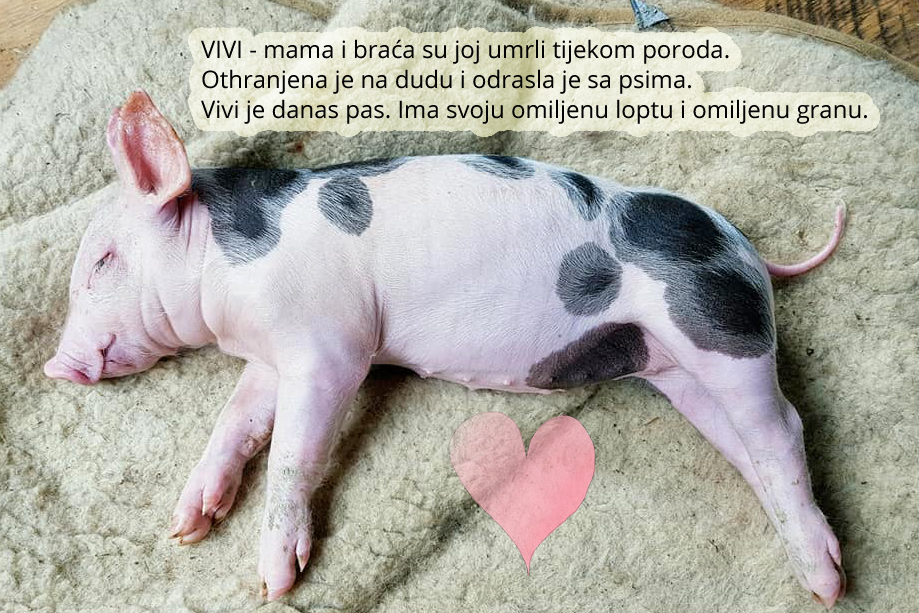 Životinje s farma nisu hodajuće kobasice i šunke, već živa bića koja osjećaju kao i mi i žele živjeti prema vlastitome smislu života. Oni poput nas dišu, osjećaju, vesele se, tuguju i svaka pojedinačno ima vlastitu osobnost i karakter.