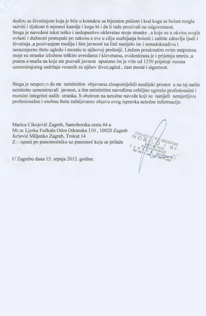 objavili smo Vaš zahtjev za ispravak objavljene informacije na našim web stranicama, kako ste u istom tražili.