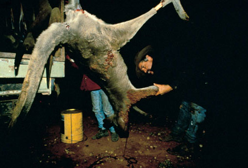 The mother struggles as her leg is slit open and a hook inserted through it. She is hauled up onto the truck and slowly dies. The scene is repeated all night long. Older joeys frantically hop away when their mothers are shot - to die a slow and lonely death from cold or starvation. This is the reality of kangaroo killing. But the killing continues. Every restaurant, café and store that sells kangaroo meat or leather supports this massacre. And they are all fed a string of excuses by the Australian Government. Not one of them stands up to scrutiny.
