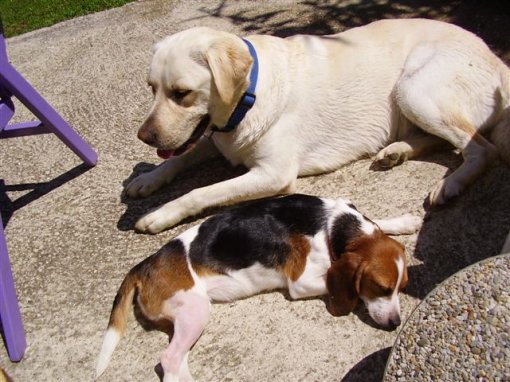 The greatest therapy for Eni was Logo, our labrador, with who she first realized that she is finally safe and happy here. It was by him that she had slowly learned all the "dog" habits and adjusted to everyday new "obstacles." She was quickest in mastering the ruses like tearing the newspapers, pushing her head into the rubbish, barking, jumping on the bed and romping in the garden.