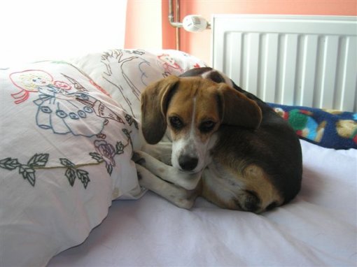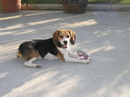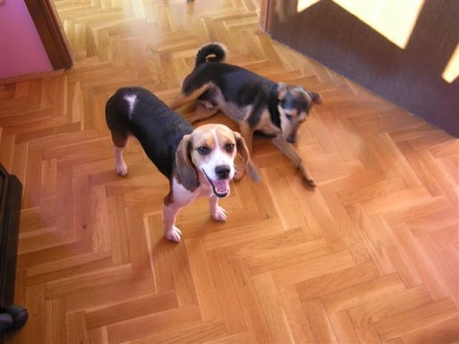 I went to the protest in front of the Faculty of Veterinary Medicine with my friend because we heard that the dogs had been there illegally and we saw a chance to get them out. I'll never forget that hot summer Sunday when I first heard the distraught barking of the beagles. Desperate moaning and disagreement with destiny was obvious in their voices and had a shocking effect on me. Soon the great day came when the beagles with news and TV fuss were given to their adopters. One of them was my Lili, called Viva by her first adopter. But Viva (alias my Lili) has one body flaw – she has no bottom, or better to say – no anus. She doesn't even have a tail but that's a smaller problem. In that moment she had only 9 pounds and had great problems with her stool. Her large intestine ends up in part without anus, and as Lili is obviously a fighter, she survived and compensated it with a sort of fistula that matches to the vaginal part, and by creating some sort of cloacae she empties her intestines… Even today it is still not clear whether there was some terrible experiment made on Lili or her parents had genes damaged by al sort of chemicals these dogs had to swallow during testing… However, nowadays it doesn't even matter. What matters is that she's a dog with special needs and requires a lot of love and patience from her fosters.
