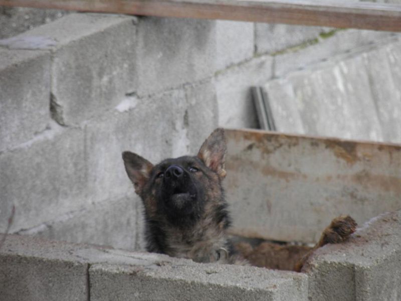 The SUZA association (the Alliance of Animal Protection Associations of the City of Zagreb) received a witness report on April 29, 2011 about a large number of dogs being kept on a location on Brestovacka cesta bb (about 300 meters from the tennis courts in Brestovacka 150) in highly inappropriate conditions. Based on the report, SUZA investigated the allegations from the report in said location on May 9, 2011, and discovered a large, 1,000 m2 fenced area, with several 1x1 m wire cages located inside the fence. The cages were found at two locations in the fenced area. Two dogs who could not even stand up straight, let alone move due to the inappropriate size of the cages were discovered in one group of the cages. No food or water bowls were discovered in the vicinity of the caged dogs. It was not possible to confirm whether there were any dogs in the second group of cages located on the other side of the fenced area without entering the area, so it was impossible to rule out the possibility of more dogs caged on the location. Beside the caged dogs, two Belgian Shepherd dogs on 2-2.5 m long chains were also discovered inside the fenced area. One of the dogs was chained to the fence, and the other dog was chained to a tree. The dogs were out in the open with no shelter or a dog house.