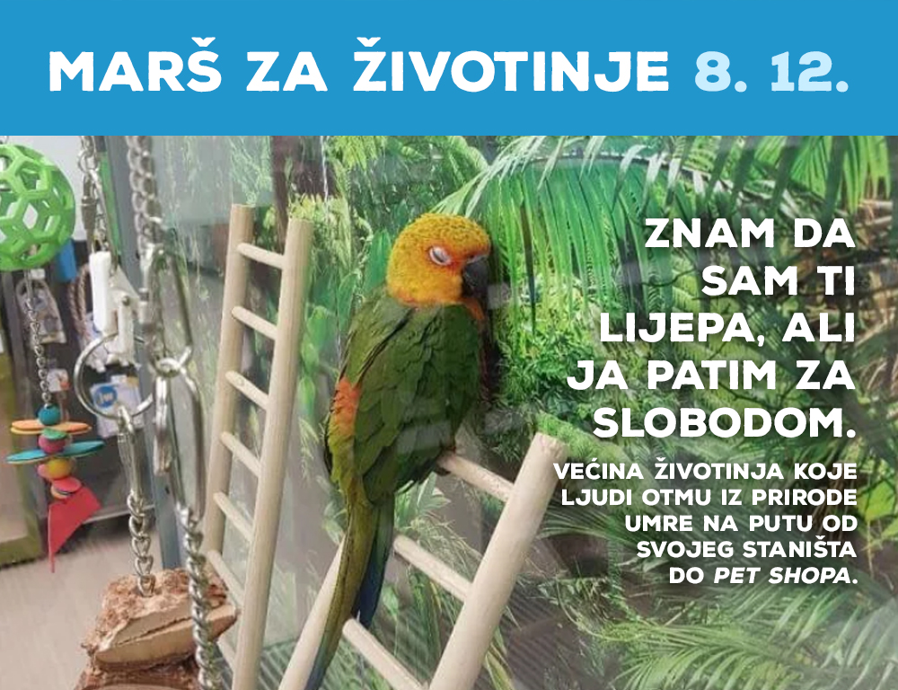 Velikom povorkom Marša za životinje, kojoj će se pridružiti gosti iz okolnih gradova i inozemstva, obilježit će se u subotu 8. 12. 2018. od 11 sati Međunarodni dan prava životinja. Od ponedjeljka 3. prosinca 2018., Maršu će prethoditi niz edukativnih i zabavnih događanja za zagrijavanje, koji će kulminirati samim Maršem. Ulaz na sva događanja je besplatan, a dobrodošli su svi koji vole životinje i imaju nešto za reći u njihovo ime. U bogatome programu svatko može pronaći nešto za sebe i dati doprinos velikom događaju posvećenom pravima životinja u Hrvatskoj – Maršu za životinje.
