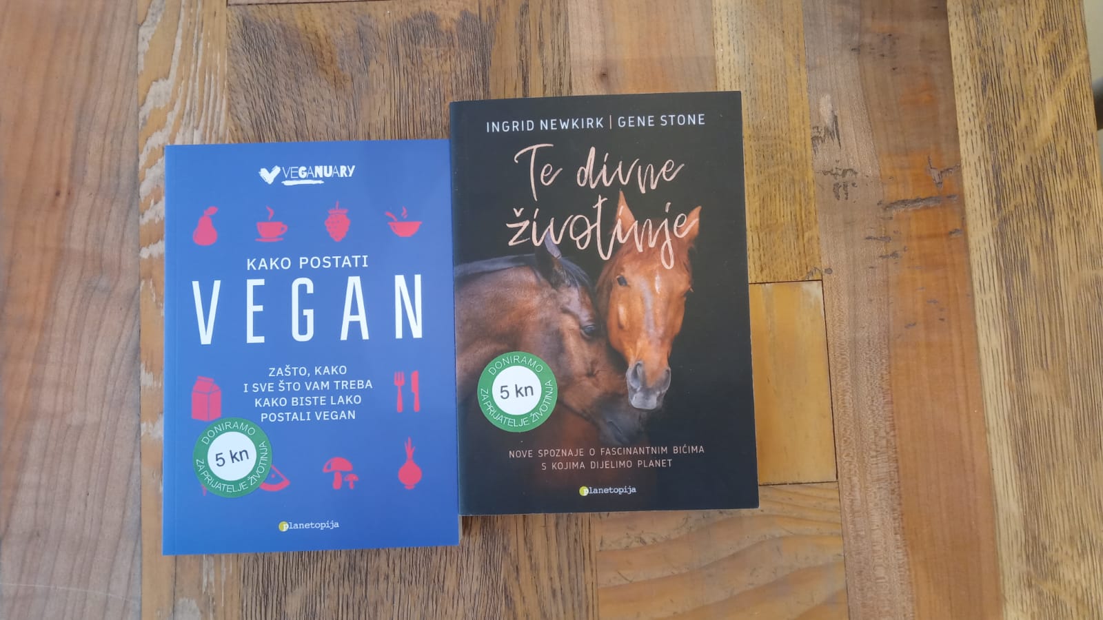 Od svakog prodanog primjerka knjige „Te divne životinje“ i „Kako postati vegan“ Planetopija daje 1 euro Prijateljima životinja.